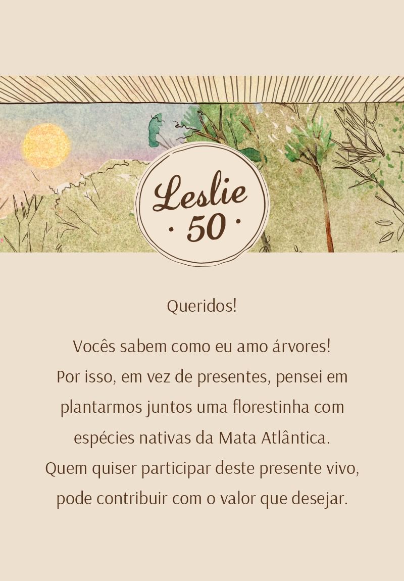 A cada R$40,00 = uma árvore nativa da Mata Atlântica de presente! Todas as mudas são plantadas por nós em nossos projetos de restauração. Elas serão cuidadas pelo período de dois anos e te enviaremos notificações para acompanhar o desenvolvimento dessa nova floresta!